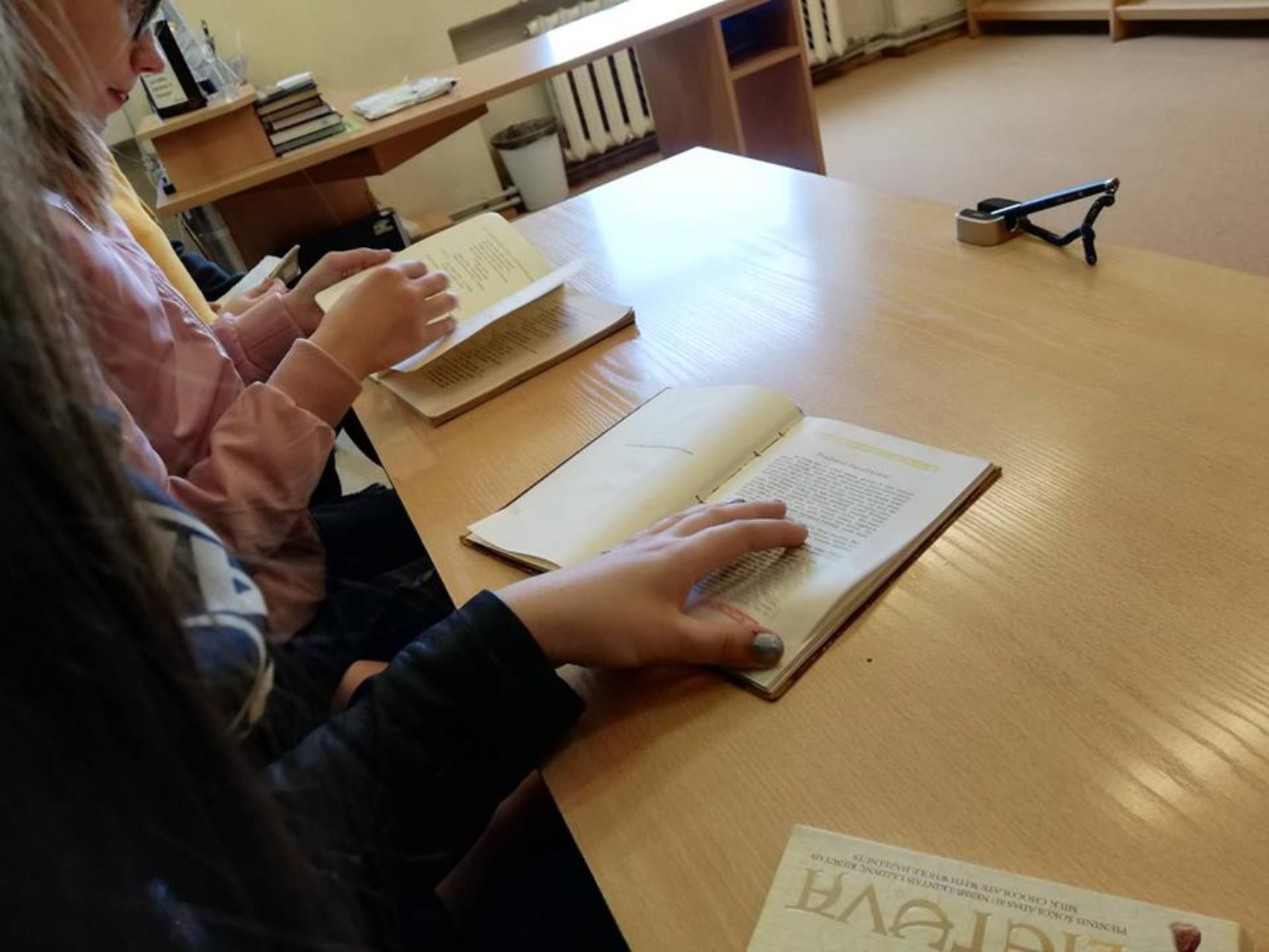 Ta proga rugsėjo 25 dieną Ic klasės gimnazistai ir lietuvių kalbos mokytoja Romualda Juknevičienė šiugždendami auksinio rudens paklotus lapus po kojomis keliavo į Pakruojo rajono savivaldybės Juozo Paukštelio viešosios bibliotekos skaityklą. Mus šiltai pasitiko skaitytojų aptarnavimo skyriaus vedėja Judita Jereckienė, kuri papasakojo apie parengtą dokumentų parodą „Įžvelgęs daugiau nei kiti“, skirtą Vydūnui. Buvo įdomu išgirsti nežinomų faktų apie rašytojo asmenybę, gyvenimą ir veiklą, pasklaidyti jo kūrinių puslapius. Nuoširdžiai dėkojame bibliotekininkei už papildytą žinių kraitelę, malonų priėmimą ir galimybę pabūti jaukioje aplinkoje.