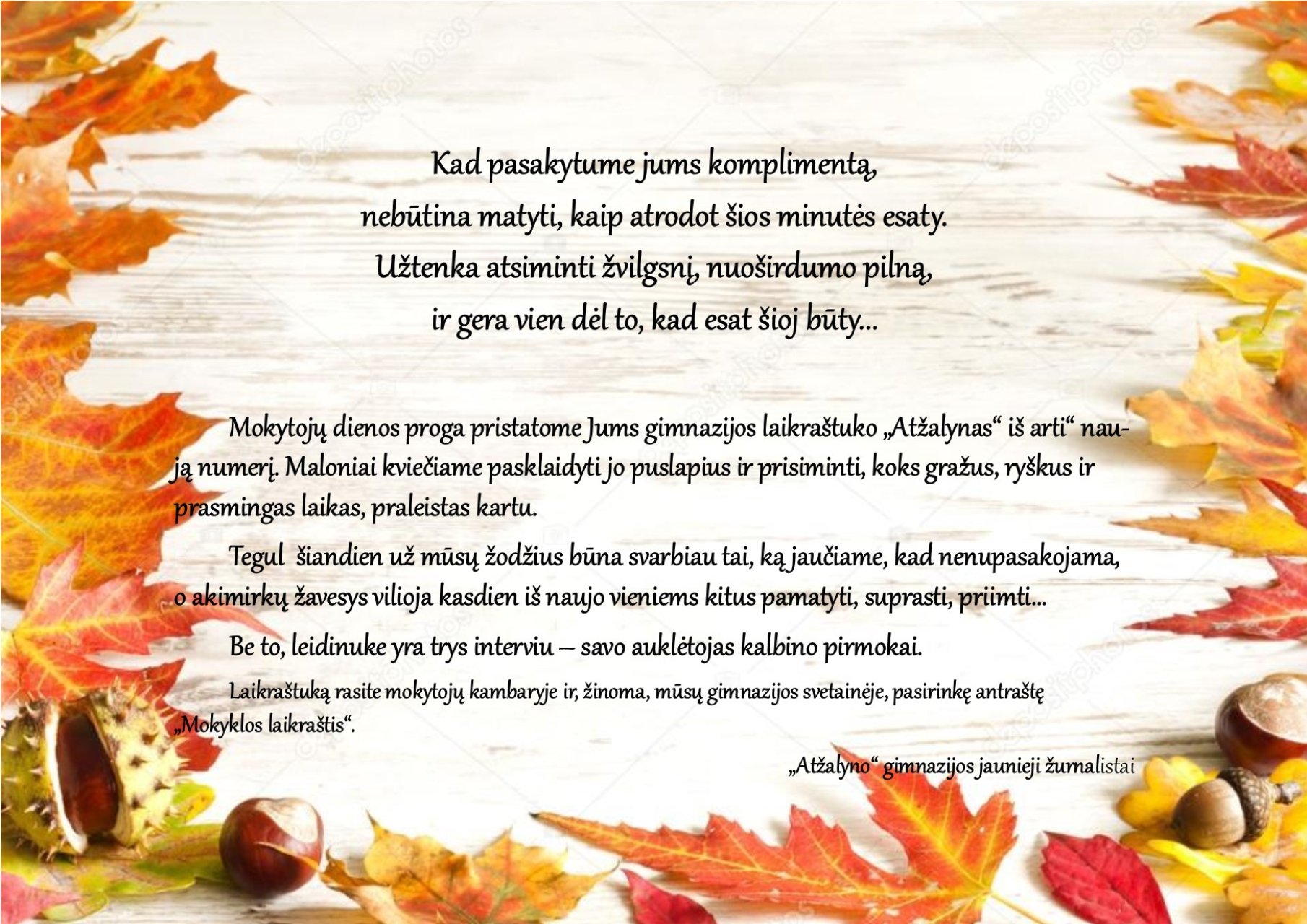 Lietuvių kalbos ir literatūros mokytoja Gražina Spudienė kartu su mokiniais ieškojo prasmingų minčių apie gimtąją kalbą. Stende puikavosi įvairūs posakiai apie lietuvių kalbos grožį, svarbą šiuolaikiniame gyvenime, ypač aktualūs pasirodė Jono Jablonskio žodžiai: „Maža garbė svetimomis kalbomis kalbėti, didi gėda – savosios gerai nemokėti.“ Pirmokai gimnazistai užsienio kalbomis parengė lankstinukus, plakatus apie įvairių šalių istorines asmenybes, garsius atlikėjus, rašytojus, menininkus. Buvo gera proga susipažinti su Anglijos, Rusijos istorija, žymių žmonių biografijomis. Tokia diena – kvietimas domėtis įvairiomis Europos, regionų ir tautinių mažumų kalboms.