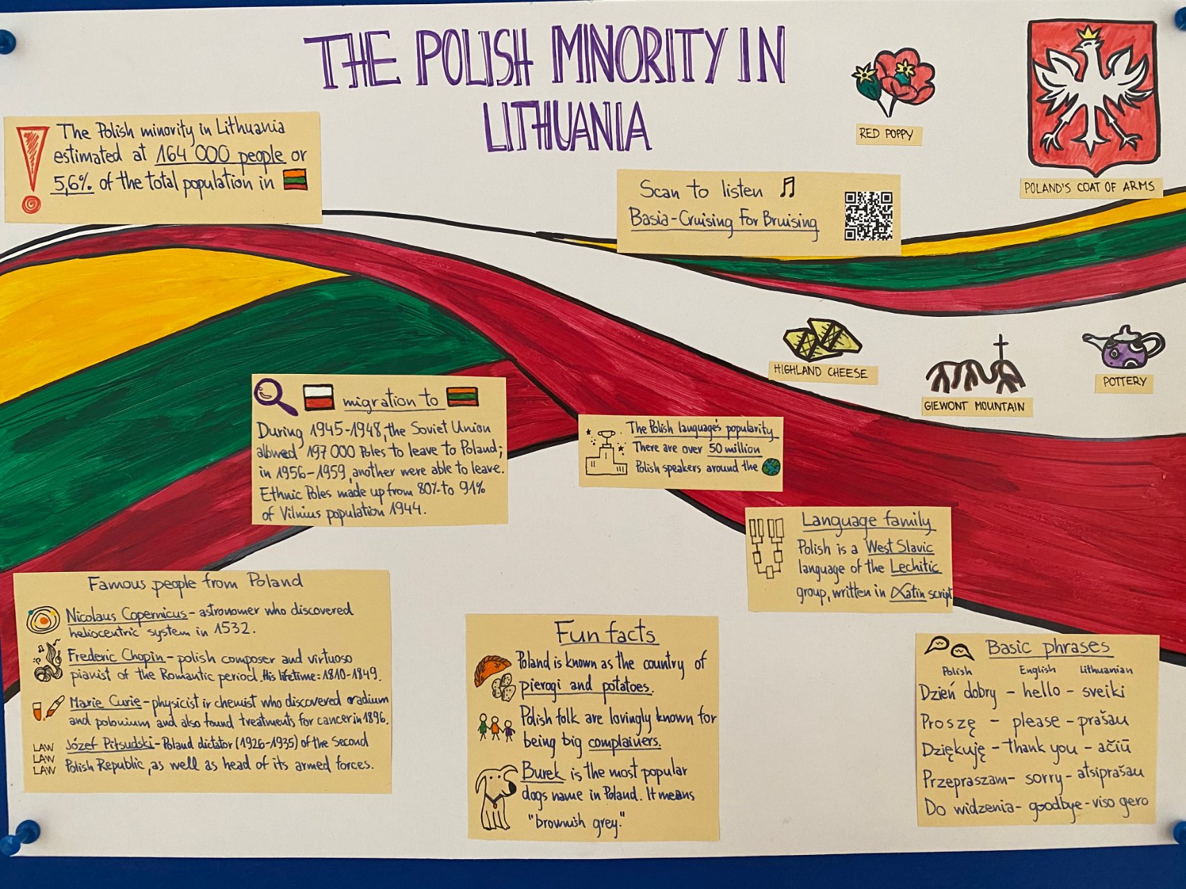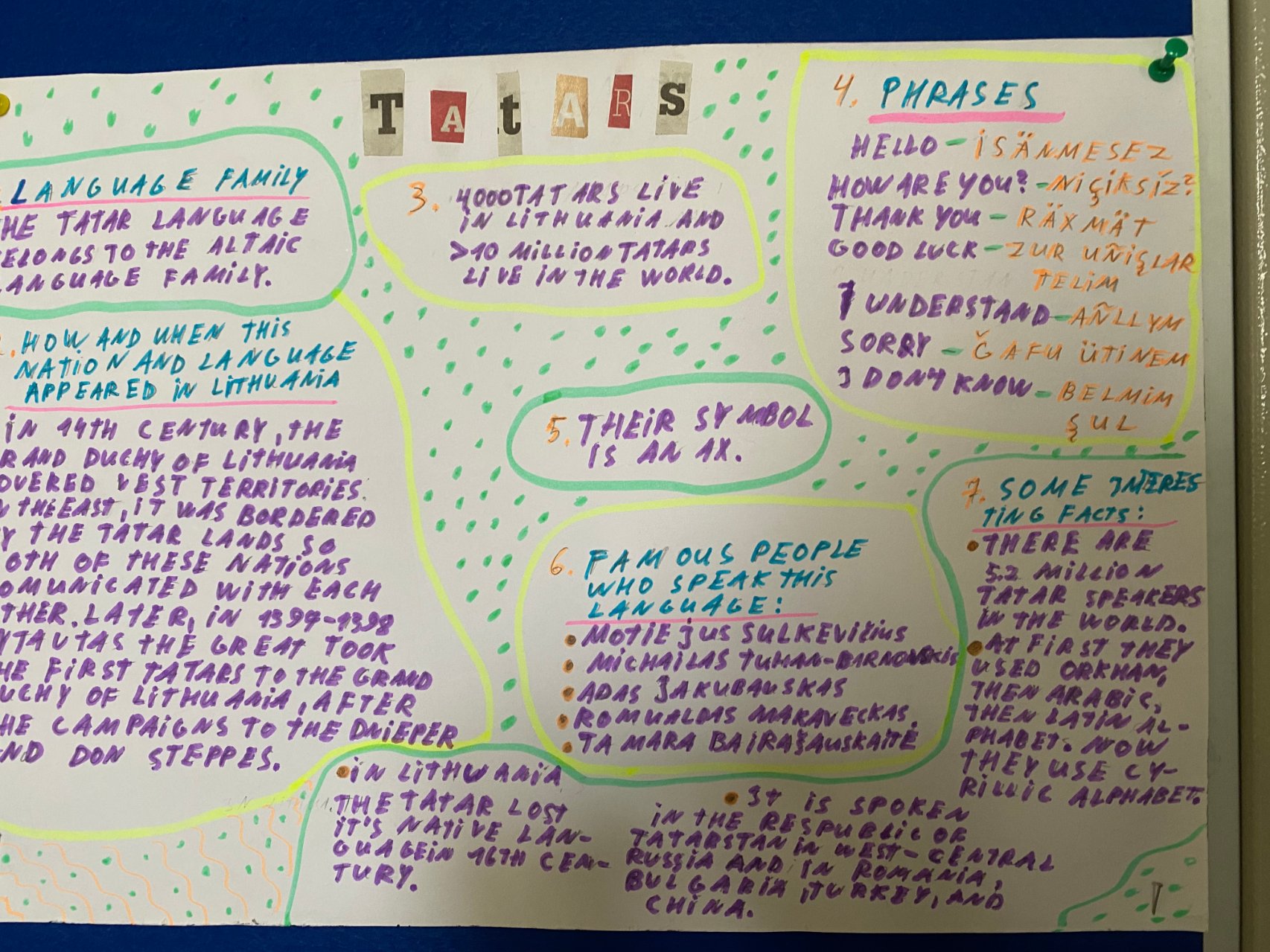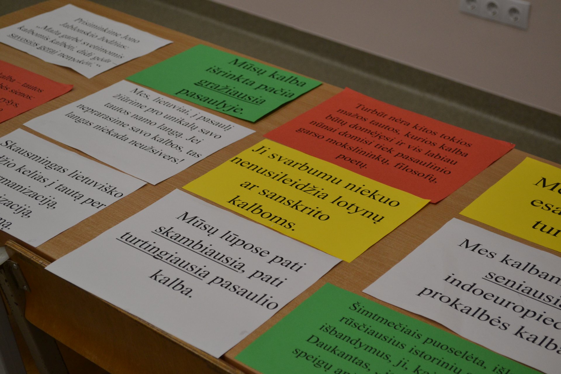 Rugsėjo 26-ąją organizuojama daug įvairių renginių Europos kalbų įvairovės dienai paminėti. Mūsų gimnazijoje kiekvienais metais stengiamasi sugalvoti vis ką nors naujo. Šiais mokslo metais gimnazistai ruošė bei pristatė vaizdinę medžiagą norėdami pabrėžti pagarbą visoms Europos kalboms ir rugsėjo 24-osios pamokos buvo kupinos įvairios bei įdomios veiklos. Anglų kalbos mokytojos pakvietė antrokus ir trečiokus pristatyti paruoštas pateiktis arba plakatus apie tautinių mažumų, gyvenančių Lietuvoje, kalbas. Rusų kalbos pamokose skambėjo senoji Pietų Amerikos Peru indėnų muzika, vėliau mokytojas rodė pateiktis ir supažindino su rusų kalbai giminingomis kalbomis. Prancūzų kalbos pamoka buvo skirta tautinių mažumų kalboms: mokiniai drauge ieškojo informacijos, dalijosi mintimis ir kūrė plakatus. Lietuvių kalbos ir literatūros mokytojai kvietė kurti tekstus, kurių žodžiai prasidėtų ta pačia raide, buvo renkami turtingiausio žodyno mokiniai, priminta, kuo išskirtinė mūsų kalba. Be to, lituanistai kalbėjo apie gimtosios kalbos išaukštinimą lietuvių literatūroje, skaitė poetų kūrybą, kartu su gimnazistais dainavo, skyrė kūrybinę užduotį – iliustruoti M. Daukšos mintį apie kalbą. Aptartos ir kitos kalbos, tačiau prieita prie išvados, kad svarbu saugoti ir puoselėti savo gimtąją kalbą, nes ji yra viena seniausių ir gražiausių kalbų pasaulyje.