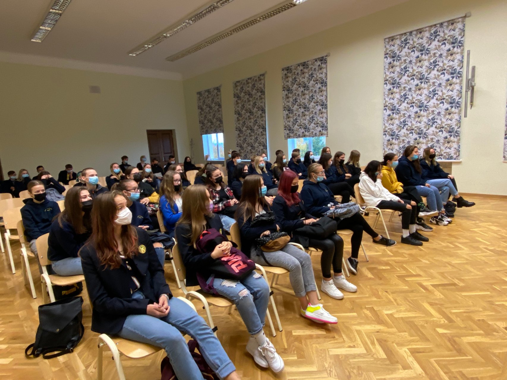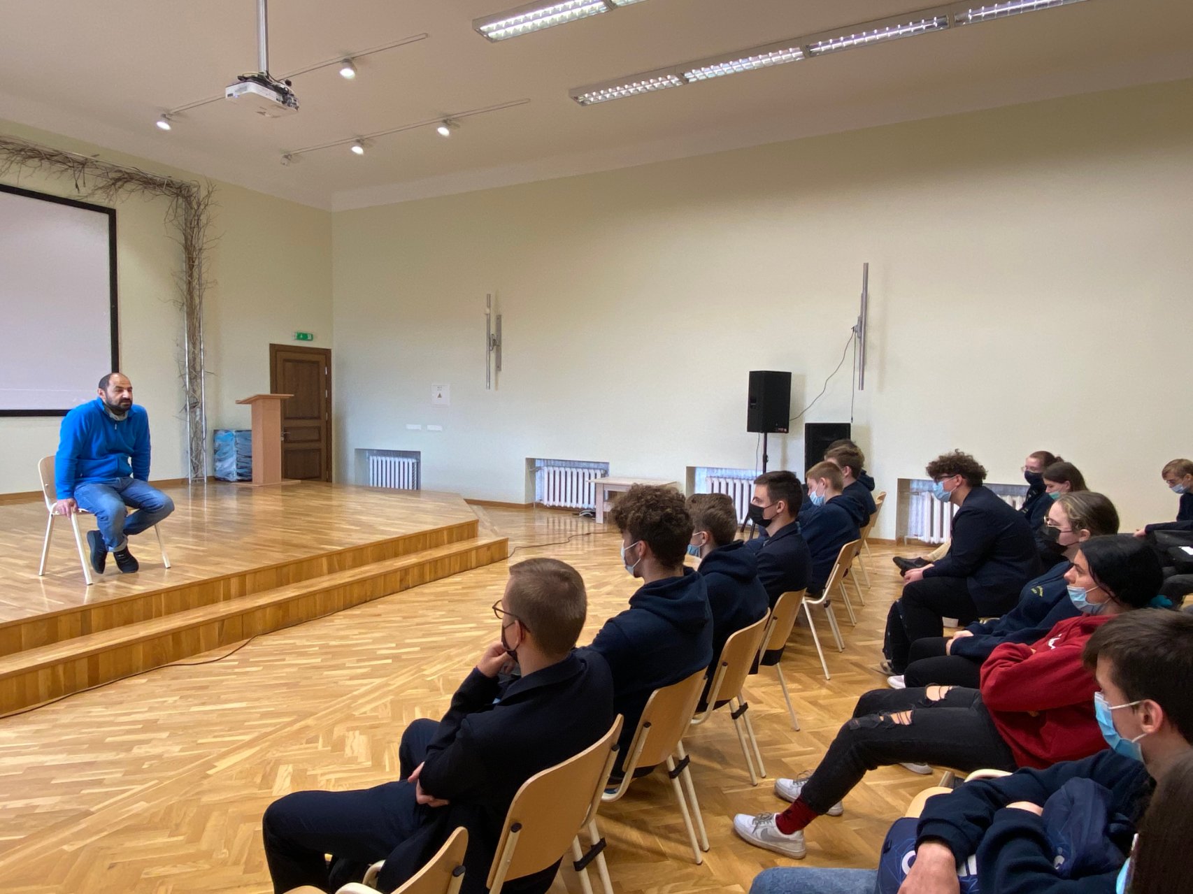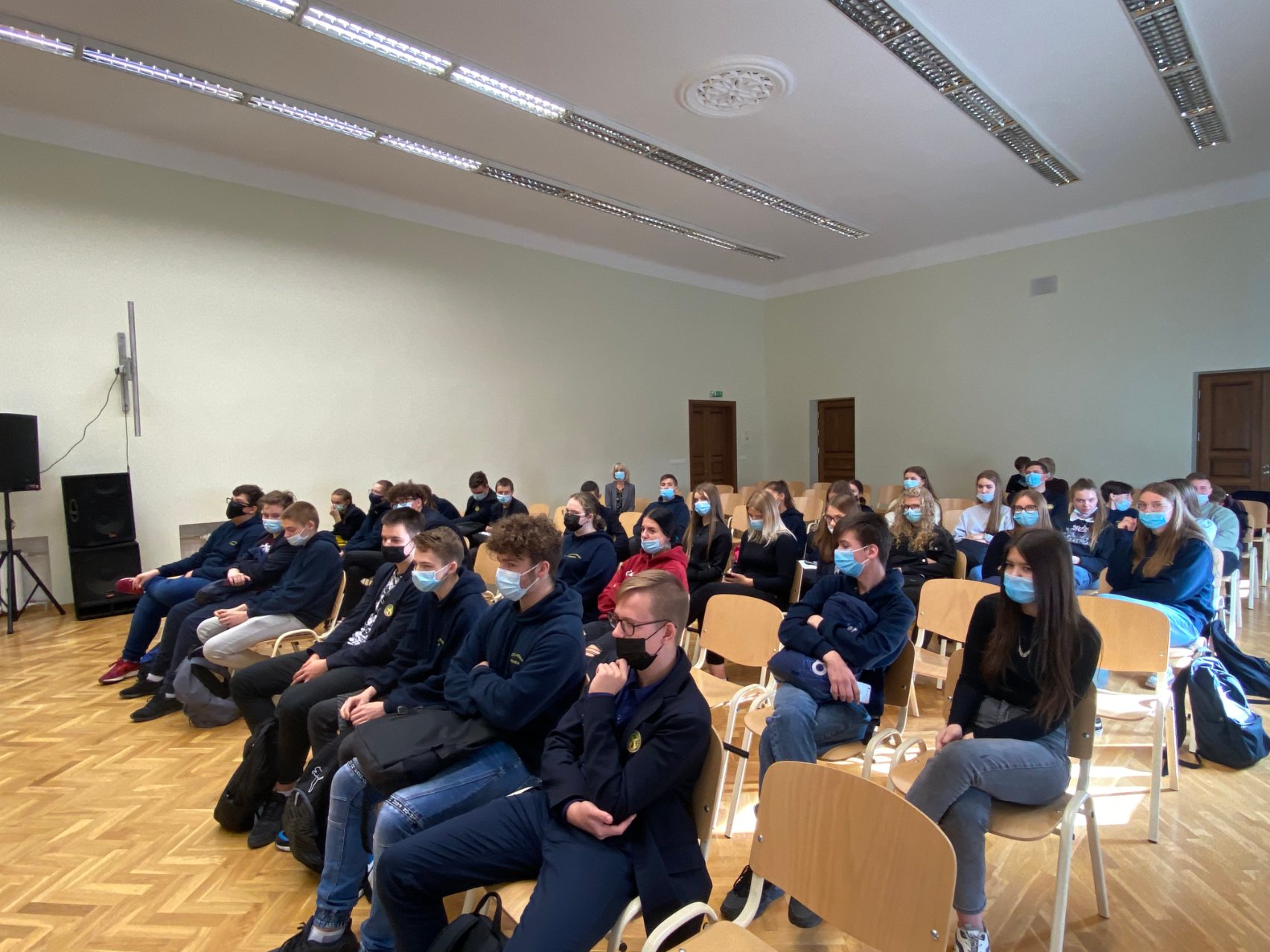 Spalio 1 dieną mūsų gimnazijoje viešėjo kino režisierius Maratas Sargsyanas, kuris pristatė kino buso projekto du filmus. Gimnazijos pirmokai žiūrėjo prancūzų režisieriaus Ameris biografinę juostą „Mari gyvenimas“, o II-III klasių gimnazistai - Giedrės Žickytės filmą „Kaip mes žaidėme revoliuciją“.