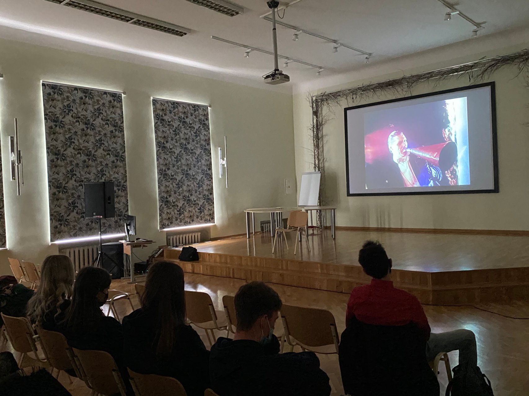 Režisierė G. Žickytė dokumentiniame filme „Kaip mes žaidėme revoliuciją“ vaizduoja Sąjūdžio priešaušrį, pradėtą legendinės roko grupės „Antis“ teatrališkais pasirodymais, kurie ezopine kalba liudijo sovietinės sistemos absurdiškumą ir žadino slepiamus tautinius jausmus. Nuolat skambant ironiškiems „Anties“ tekstams, prieš akis iškyla roko maršas per Lietuvą, Baltijos kelias, Sausio 13-osios vaizdai. Juos sieja įtaigus Šviesios atminties filosofo Leonido Donskio žodis, filosofo A. Juozaičio, istoriko A. Anušausko, A. Kaušpėdienės, M. Starkevičiūtės komentarai. Filmas skatina susimąstyti apie tautos vieningumą tada, anais laikais, ir šiomis dienomis. Pasibaigus peržiūrai, kino režisierius Maratas su mokiniais diskutavo apie šio filmo žanrą, istorinio konteksto perteikimą.