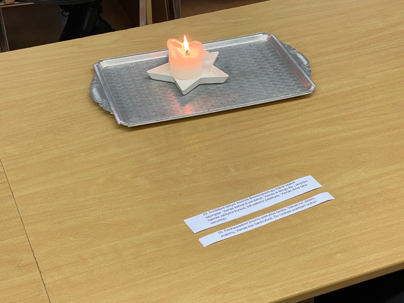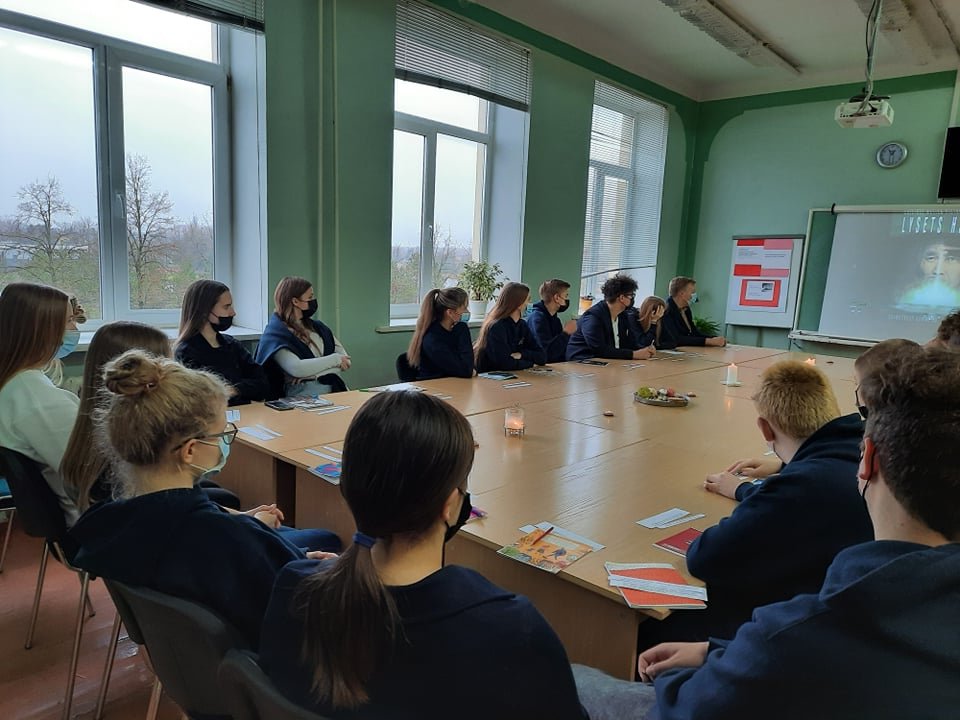 Lapkričio 9-15 dienomis organizuojami kasmetiniai Šiaurės šalių literatūros savaitės renginiai. Šių metų savaitės tema – „Svajonės ir ilgesys Šiaurėje“. Įvairios veiklos vyksta ir mūsų gimnazijoje. Širdingai dėkojame bibliotekininkei Danutei už padrąsinimą ir pagalbą organizuojant garsinius skaitymus žvakių šviesoje. I c, II a ir II c klasių gimnazistai kartu su bibliotekininke Danute Kučinskiene ir lietuvių kalbos mokytojomis Gražina Spudiene ir Romualda Juknevičiene leidosi į neįprastą kelionę po pasaulį: mokiniai skaitė norvegų rašytojos ir iliustruotojos Kristin Roskifte knygos „Visi iki vieno“ ištraukas, stabtelėjo prie iliustracijų. Nors kūrinys yra skirtas jaunesniojo mokyklinio amžiaus vaikams, tačiau mums kiekviena knygos mintis pasirodė prasminga, privertė susimąstyti: „Septyni su puse milijardo žmonių vienoje planetoje. Kiekvieno jų istorija ypatinga. Visi iki vieno svarbūs. O vienas jų esi tu!“ Be to, bibliotekininkė papasakojo apie Šiaurės šalis, visi kartu klausėmės norvegų grupės atliekamos dainos, mokiniai dalyvavo „protų mūšyje“ apie Šiaurės šalis. Be to, mokytojos kvietė gimnazistus pamąstyti, ar visi troškimai įgyvendinami, kokie iš viso jie būna, bibliotekininkė pristatė interneto puslapį, kuriame skelbiamos vaikų, augančių socialinės rizikos bei socialinių įgūdžių stokojančiose šeimose, svajonės. Lieka viltis, galbūt jų norus kas nors išpildys... Smagu, kad skaitydami galime keliauti, pažinti kitas šalis, susimąstyti apie vertybes.