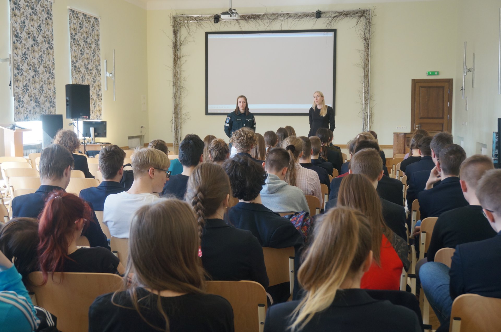 Mūsų gimnazija organizuodama įvairias veiklas prisijungė prie Sąmoningumo didinimo mėnesio BE PATYČIŲ iniciatyvos transformuoti, išplėsti ir pakviesti visus, norinčius stabdyti patyčias ir kitokį skaudinimą. Ta proga dalis I-III gimnazijos klasių mokinių balandžio 18 dieną gimnazijos posėdžių ir konferencijų salėje klausėsi paskaitos „Patyčios elektroninėje erdvėje“, kurią skaitė visuomenės sveikatos stiprinimo specialistė Laisvida Badauskienė ir Pakruojo RPK bendruomenės pareigūnė Jurgita Bialaglovė. Lektorės kalbėjo apie pavojus, su kuriais galima susidurti elektroninėje erdvėje, socialinių tinklų įtaką sveikatai, parodė keletą filmuotų situacijų ir paaiškino, kaip reikėtų elgtis, jei taip nutiktų. Be to, viešnios kvietė mokinius saugoti savo asmeninius duomenis internete, atsakinėjo į gimnazistų klausimus, kalbėjo apie administracinę ir baudžiamąją atsakomybę už netinkamą elgesį virtualioje erdvėje.