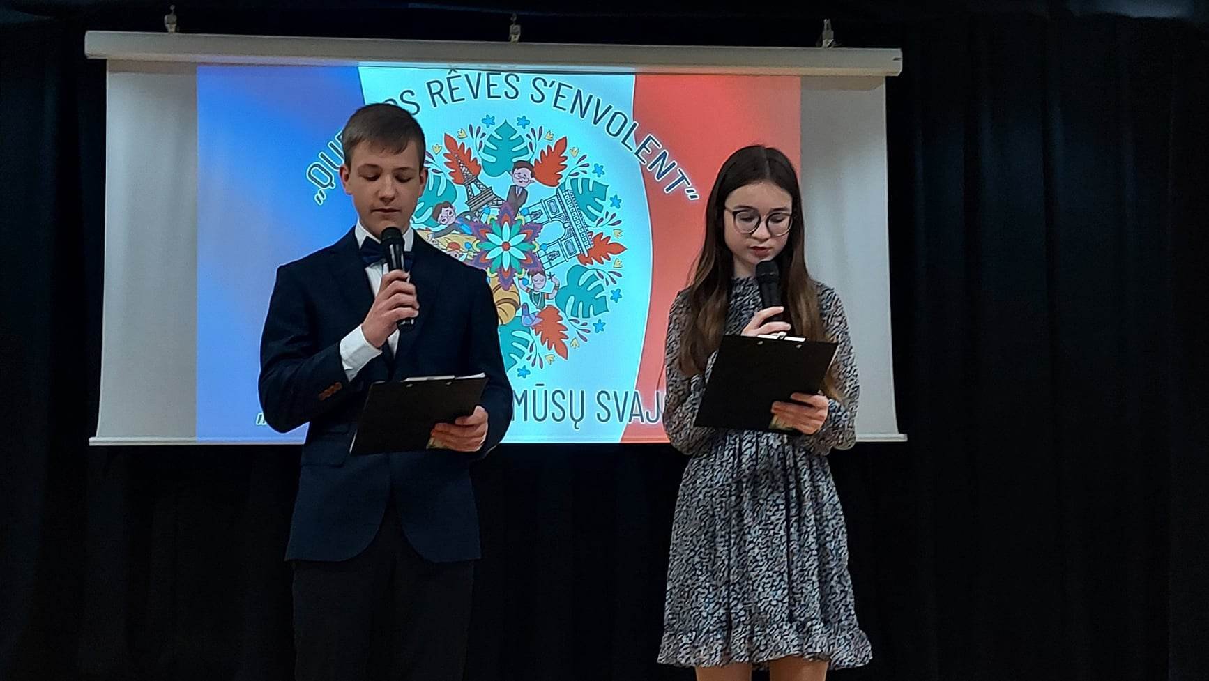 Nors pavasario dangus nebuvo dosnus saulės ir šviesos, Pakruojo „Atžalyno“ gimnazijoje sklandė pakili prancūzų kalbos ir frankofoniškos kultūros dvasia. Prancūzų kalbos mylėtojai rinkosi į rajoninę Frankofonijos šventę „Tegul skrenda mūsų svajonės“ („Que nos rêves s‘envolent“). Tai jau šeštoji, tradicinė Frankofonijos šventė, rengiama kovo mėnesį, kuris visame pasaulyje vadinamas frankofonišku. Labai džiugu, kad prancūzų kalbos renginiuose dalyvauja mūsų rajono mokiniai. Didžiuojuosi savo mokiniais, kurie aktyviai įsijungia į šias veiklas ir gelbsti sudėtingose situacijose, ypač kai užgriūva renginio organizavimo rūpesčiai. Taip atsitiko ir šį pavasarį, kai kreipiausi į mūsų progimnazijos mokinius padėti organizuoti šventę ir jie mielai sutiko. Šventės vedėjams šeštokei Gustei Vaitiekūnaitei ir septintokui Nojui Vaičeliūnui teko vesti šį renginį. Tikras iššūkis ir didelė atsakomybė, su kuriais jaunieji vedėjai susidorojo. Renginio svečius žavėjo Gustės ir Nojaus sceninė kultūra, žodžio raiška. Ne taip paprasta vesti renginį užsienio kalba, kai jos mokaisi pusantrų metų. Bet noras, pastangos, atkaklus teksto repetavimas davė puikų rezultatą. Ačiū, Nojau, už Tavo kantrybę, atsakingumą ir nuoširdumą, taisyklingą prancūzišką tartį. Gustei teko lietuviškas renginio variantas. Ačiū, Guste, ir Tau už laisvumą, atsakingumą, norą padėti, būti čia ir dabar.