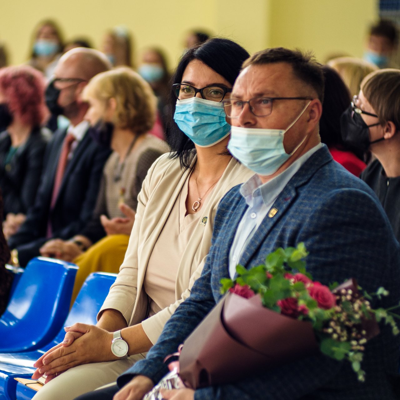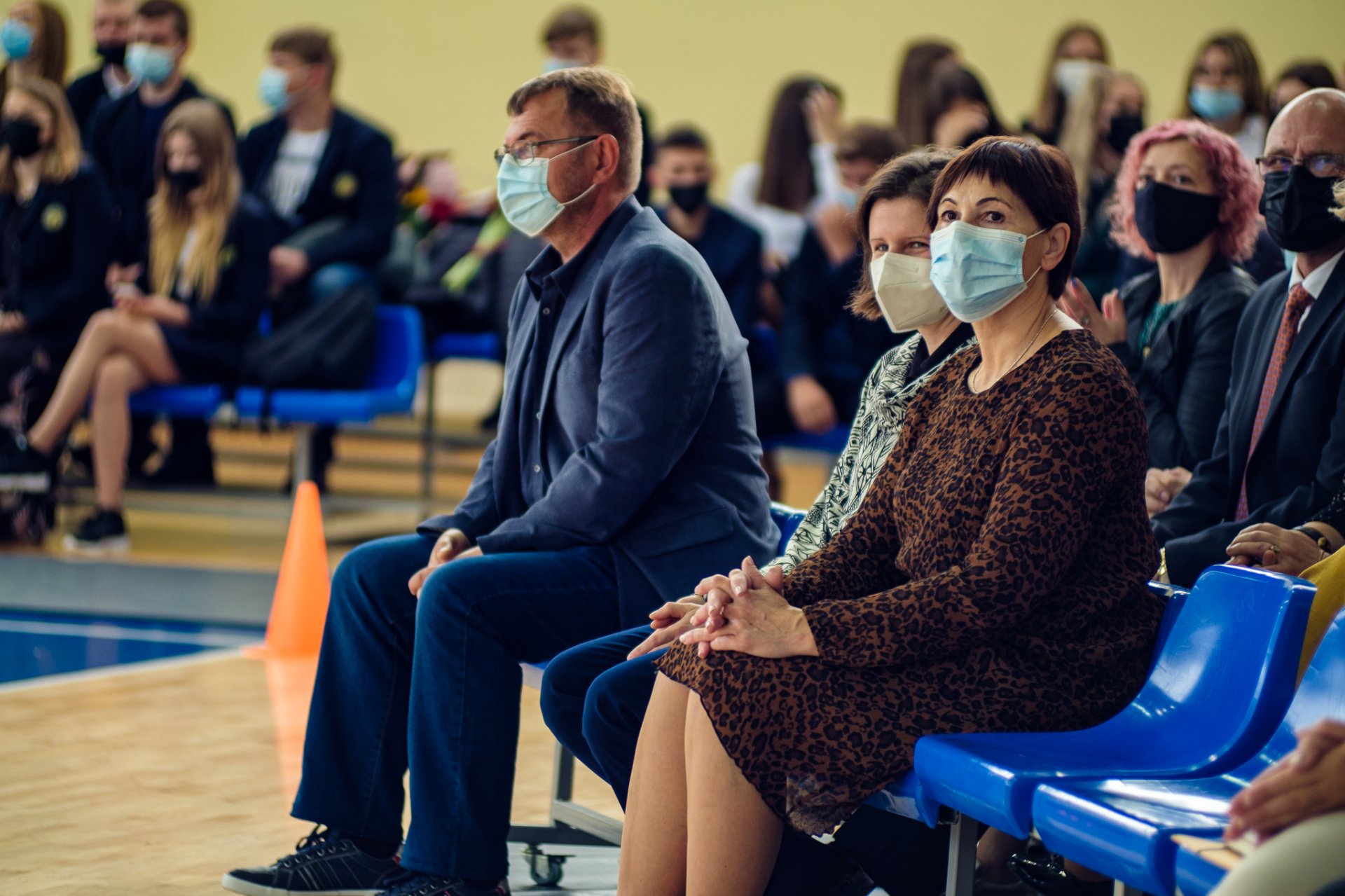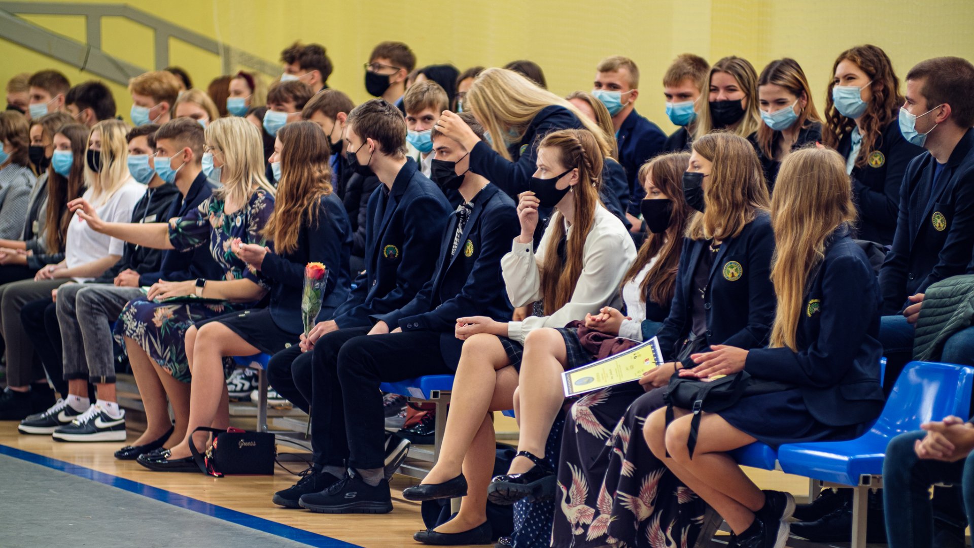 Po to visi skubėjo į gimnaziją, prie kurios trečiokai pasitiko oriai žengiančius abiturientus su auklėtojomis. Sporto salėje šurmuliavo gimnazijos bendruomenė, atvyko svečių. Viltingai skambėjo ketvirtokės Beatos Vaitiekūnaitės skambi daina. Renginį vedė antrokai. Džiugu, kad šventinis rytas buvo kupinas tikro susitikimo džiaugsmo. Pakruojo „Atžalyno“ gimnazijos direktorė Asta Valuntienė visus pasveikino mokslo metų pradžios proga ir pakvietė būti kartu, matyti, jausti, puoselėti žmogiškąsias vertybes. Abiturientams ji linkėjo didelių ambicijų, siekiant geresnių rezultatų, pirmokams gimnazistams - sėkmingos adaptacijos, visiems - tvirto starto! Veržliai skambėjo direktorės žodžiai apie susitarimais pagrįstą saugią bendruomenę, kurią kuriame visi kartu. Direktorė IV a klasės mokiniui Joriui Vaicekauskui įteikė Lietuvos Respublikos švietimo, mokslo ir sporto ministerijos II laipsnio diplomą ir užkabino medalį. Vaikinas 2020-2021 m. m. dalyvavo Lietuvos mokinių technologijų olimpiadoje „Kūrybinis virusas“ ir užėmė prizinę vietą statybos ir medžio apdirbimo veiklos 11-12 klasių grupėje. Gimnazistui pasiruošti padėjo technologijų mokytojas Egidijus Impolis. Taip pat praeitais mokslo metais Eglė Urbonaitė ir Fausta Šneideraitytė, II b klasės gimnazistės, ir III b klasės mokinė Vanesa Juzeliūnaitė dalyvavo respublikiniame konkurse „Lietuvos kovų už laisvę ir netekčių istorija“. Merginos išsiuntė piešinius (darbų tematika – Lietuva sovietų okupacijos metais, trėmimai). Gimnazistėms įteiktos padėkos. Mokines konsultavo istorijos mokytoja Gražina Kairiūkštienė. Be to, direktoriaus pavaduotojos ugdymui Rasa Augustinaitienė ir Rasa Bertulienė įteikė gimnazistams padėkos raštus už labai gerą mokymąsi, dalyvavimą įvairiuose konkursuose ir įvairiose kitose veiklose 2020-2021 m. m. Direktoriaus pavaduotoja ugdymui Rasa Augustinaitienė palinkėjo naujų idėjų ir jų įgyvendinimo naujais mokslo metais.
