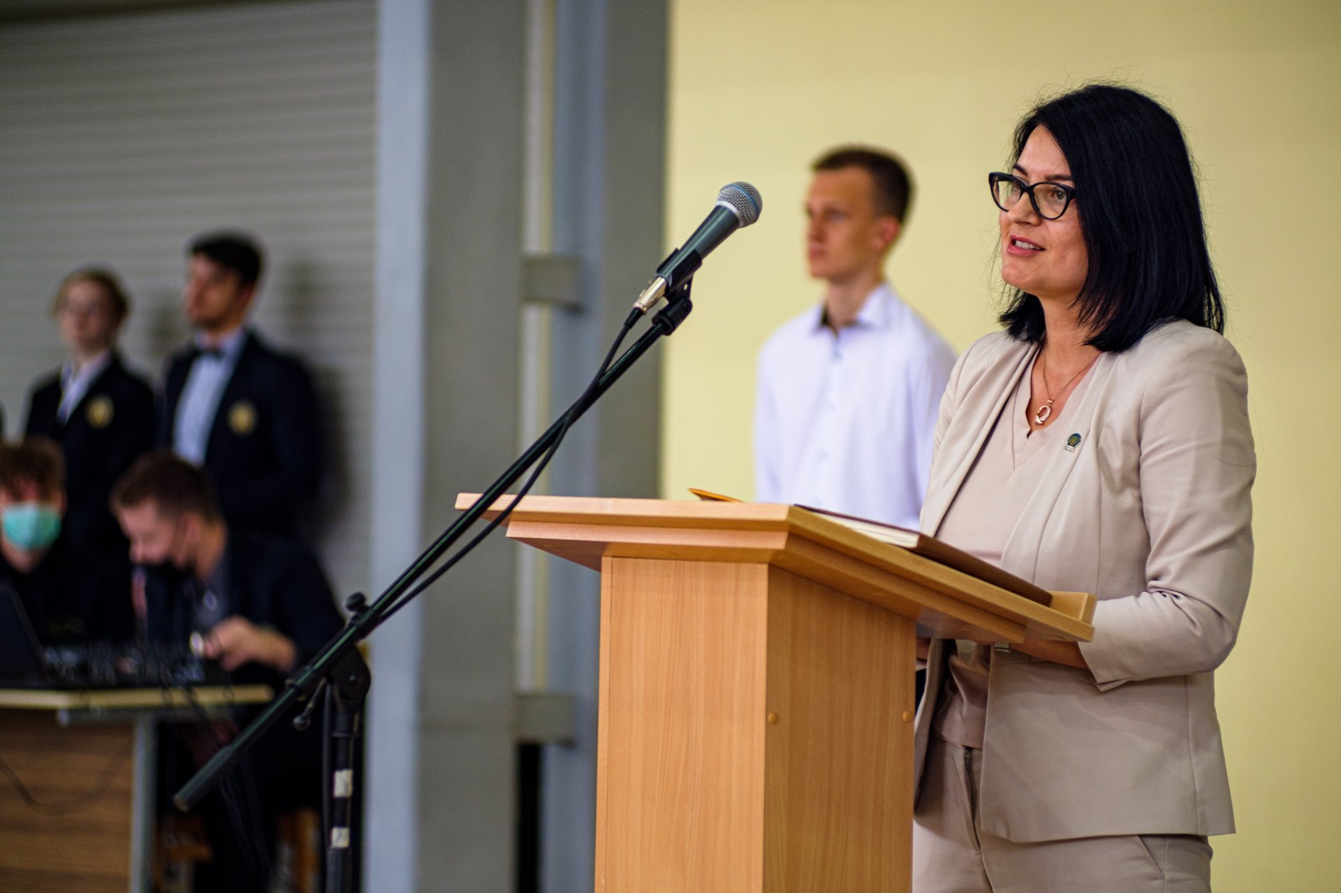 Gražios mokslo metų pradžios visiems linkėjo Pakruojo rajono savivaldybės administracijos Pakruojo seniūnijos seniūnas Svajūnas Miknevičius. Taip pat jis pasveikino naująją direktorę Astą Valuntienę. Buvo džiugu renginyje išvysti ir buvusį gimnazijos direktorių Kęstutį Razumą, kuris papasakojo, kad domisi gimnazijos gyvenimu, pabrėžė, kad čia yra daug potencialo, ir išreiškė viltį, kad direktorė tik gausins jį. Pasak vadovės, jai buvo labai svarbu išgirsti buvusio direktoriaus mintis, be abejo, bus svarbus komandinis darbas, sutelktumas, iniciatyvumas. Kalbėjo gimnazijos mokinių prezidentė Sandra Jurytė, kuri drąsino pirmokus įsijungti į įvairias veiklas, abiturientams linkėjo neišdildomų akimirkų. Socialinė pedagogė Roma Stočkė visus nudžiugino daina. Pirmokų kuratorė Audronė Geležinytė-Šniukienė drąsino pirmokus ir bendruomenei linkėjo sėkmingų bei prasmingų mokslo metų. Baigėsi šventė sporto salėje ir gimnazistai išskubėjo į klasės pabendrauti su auklėtojomis ir kuratorėmis.